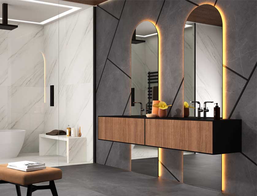 Descubre la excelencia de los espejos diseñados a medida, donde la innovación se encuentra con el estilo: espejos con iluminación LED integrada, acabados sofisticados y diseños vanguardistas que convierten cada pieza en una joya para tu hogar. Perfectos para baños contemporáneos, nuestros espejos LED ofrecen una iluminación eficiente y un toque de distinción que eleva cualquier ambiente.