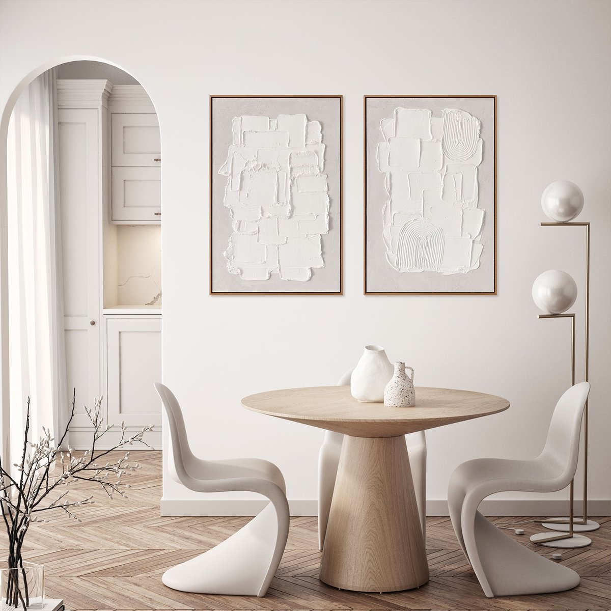 Con un marco de madera interno y un marco de madera, la pintura está lista para colgar. Balai se puede combinar con la pintura de la espátula, hecha con la misma técnica.