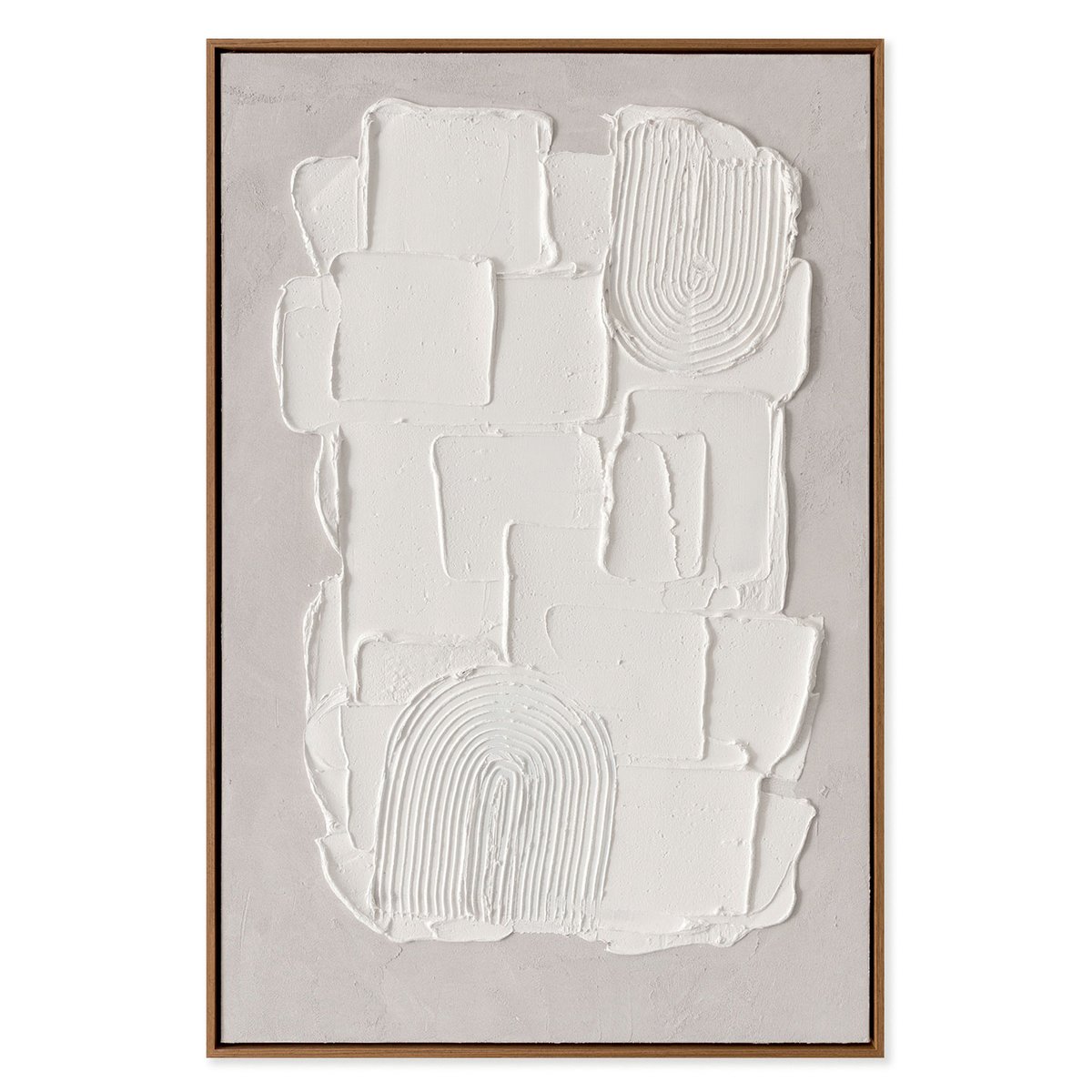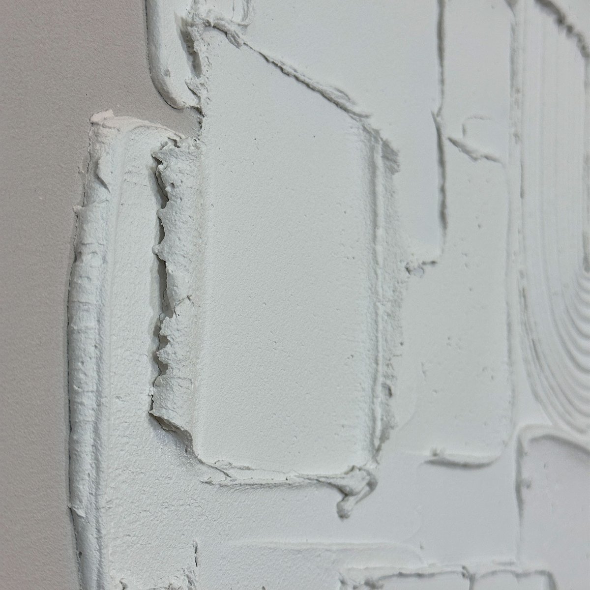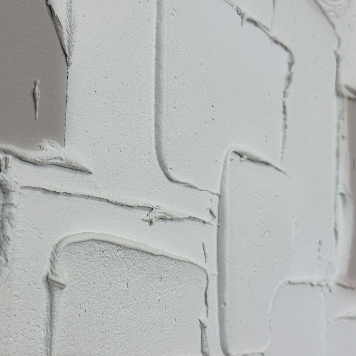 Balai es una pintura abstracta pintada a mano con acrílicos sobre lienzo. Sobre un fondo neutro estirar fuertemente las espátulas de material de la pintura blanca.