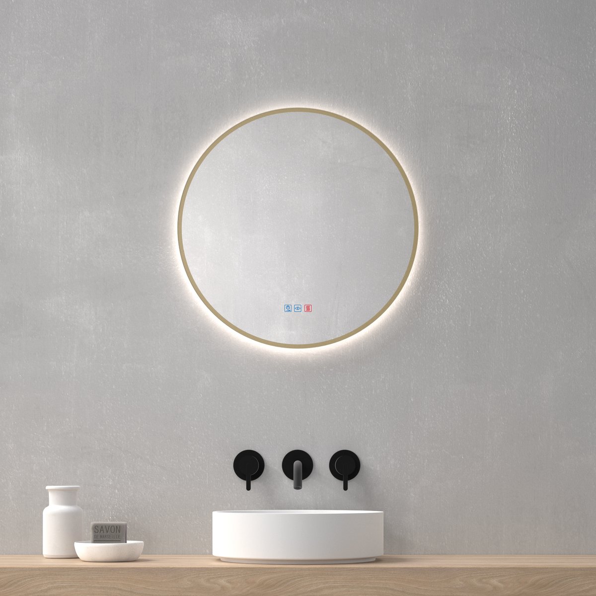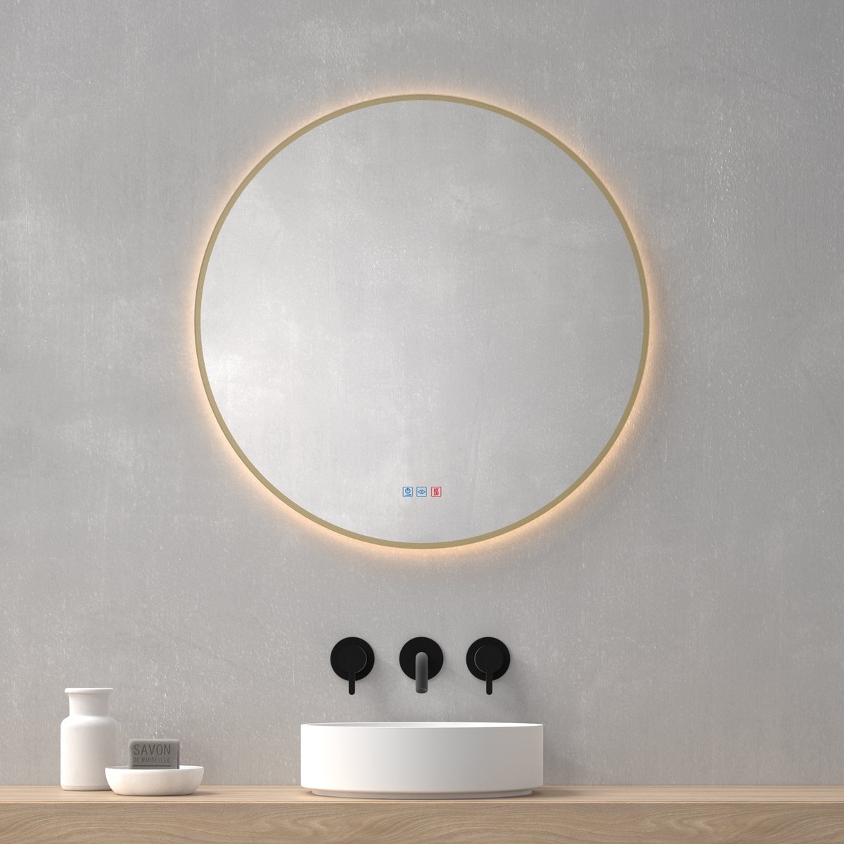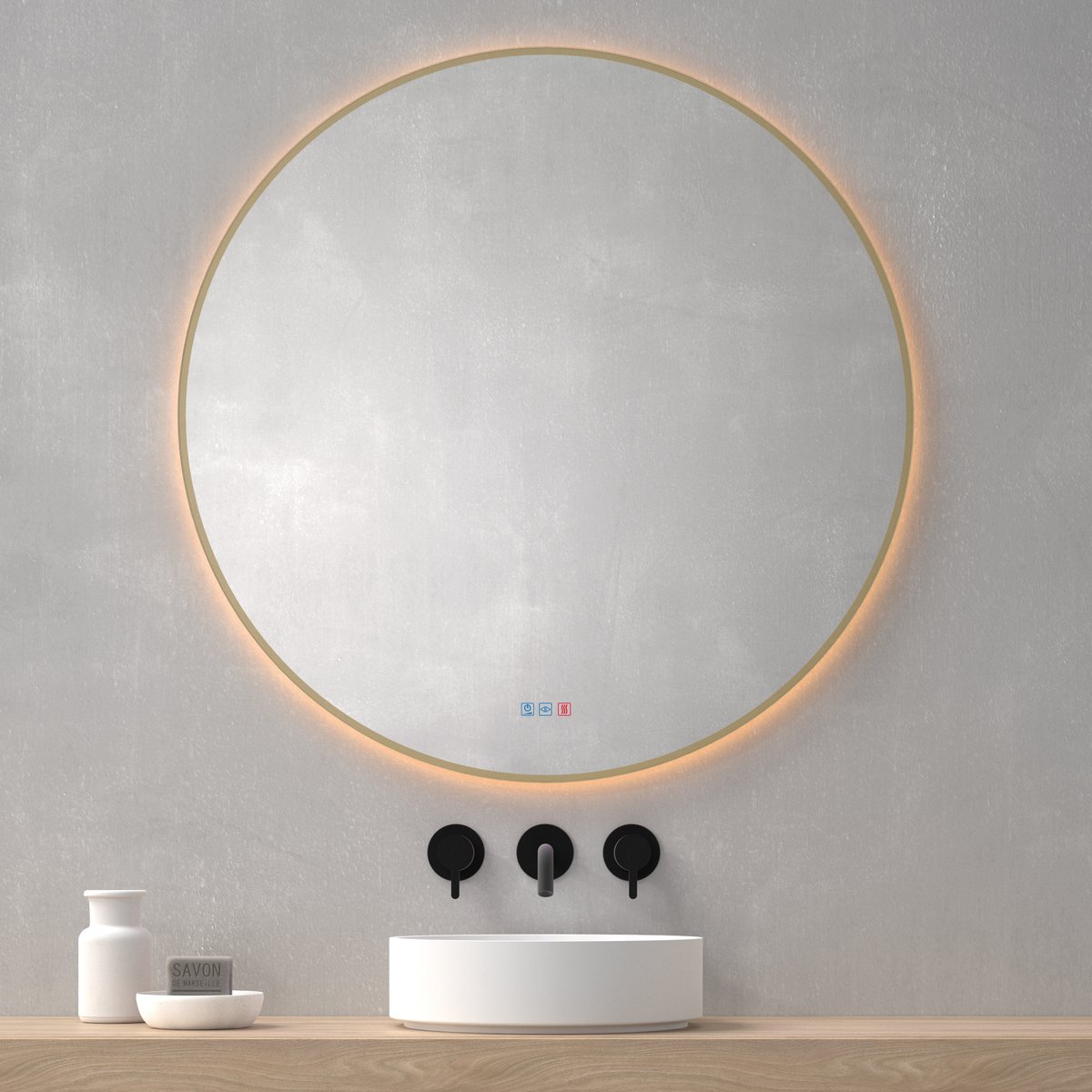 Este espejo redondo decorativo redefine el concepto de iluminación en el baño, convirtiéndose en una pieza central de diseño y funcionalidad. Disponible en tres diámetros (60, 80 y 100 cm), cada modelo ha sido cuidadosamente diseñado para ofrecer una relación óptima entre circunferencia y luminosidad, con un diseño único, con contorno pintado en color oro. Adaptándose a distintos espacios con equilibrio y estilo.